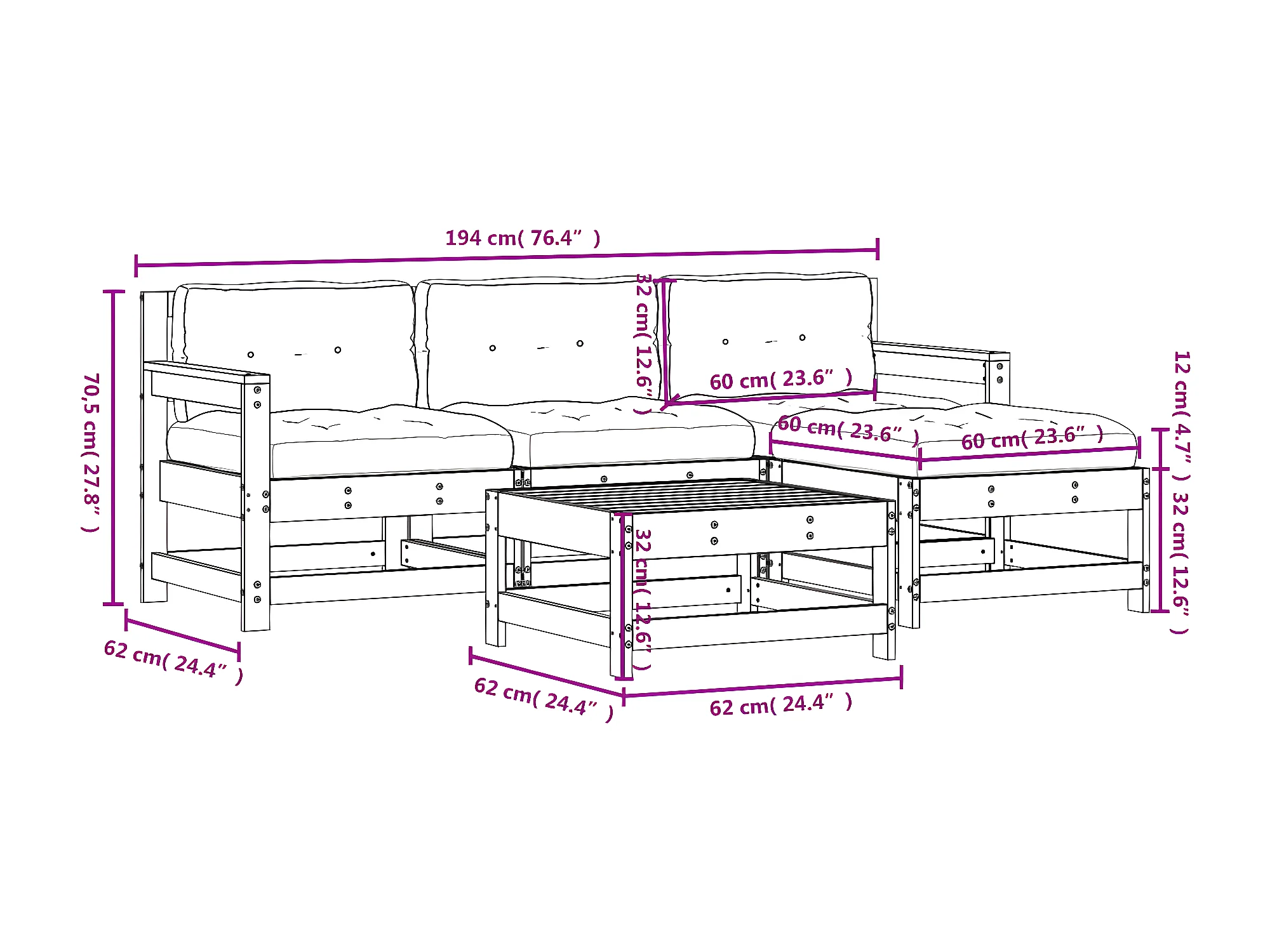 Salon de jardin 5 pcs avec coussins bois massif douglas