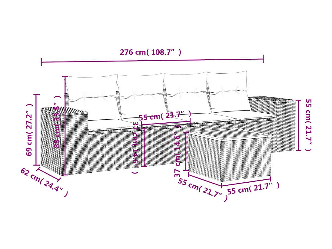 Salon de jardin 5 pcs avec coussins gris résine tressée