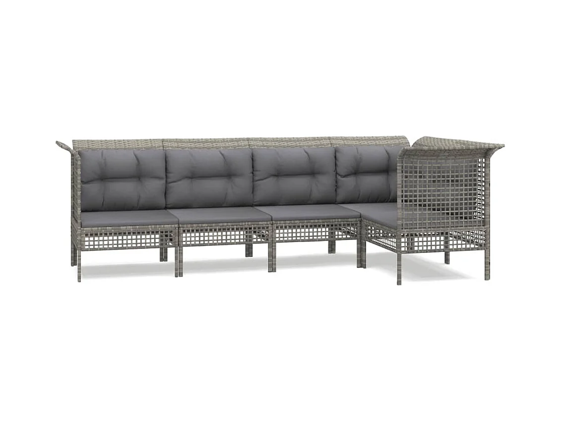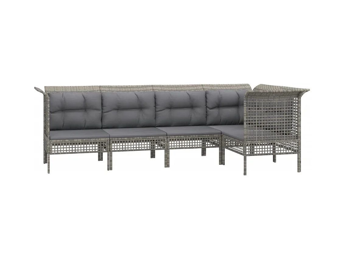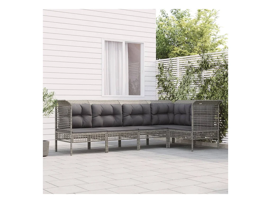 Salon de jardin 5 pcs avec coussins Gris Résine tressée