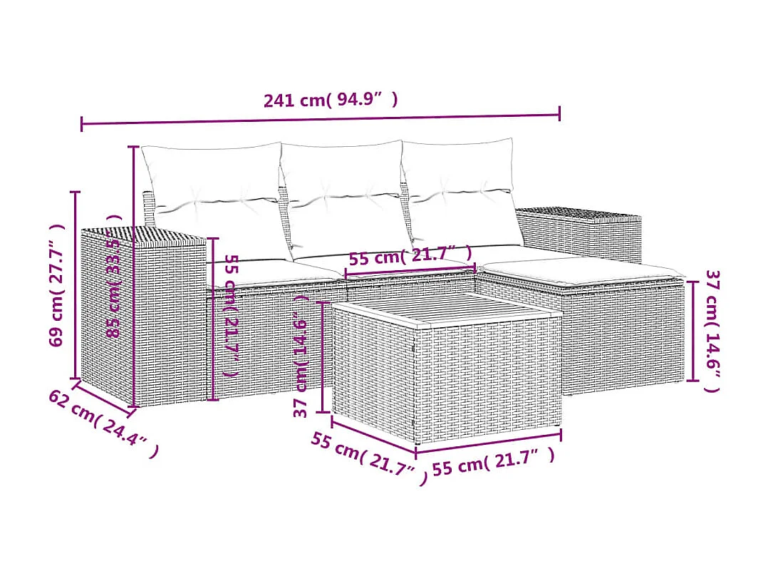 Salon de jardin 5 pcs avec coussins gris résine tressée
