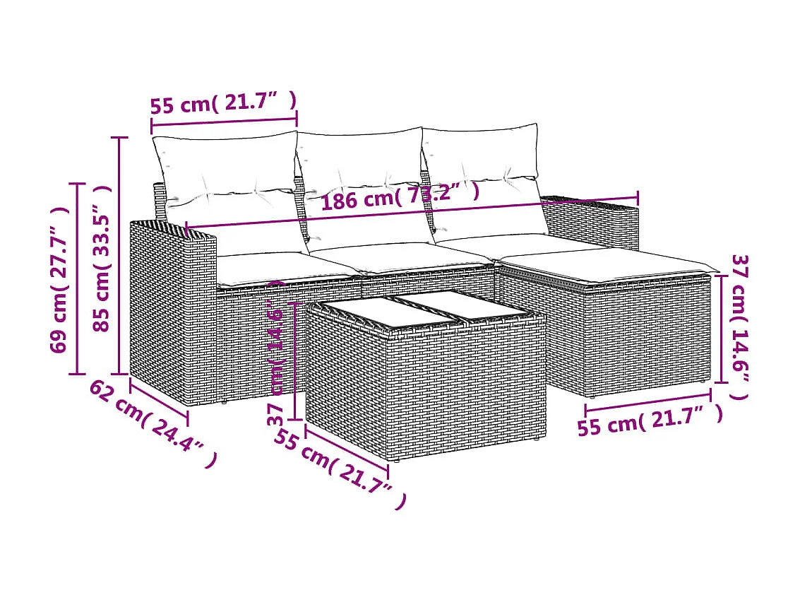 Salon de jardin 5 pcs avec coussins gris résine tressée
