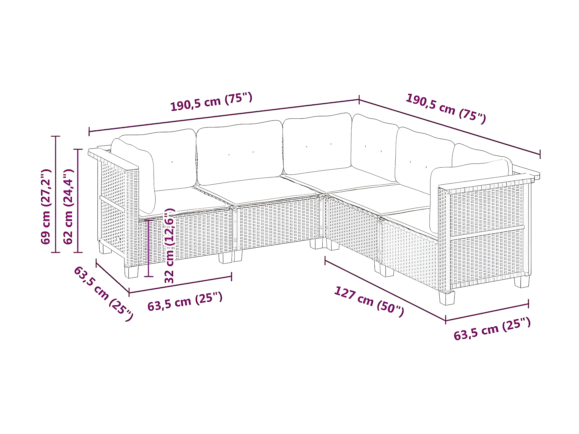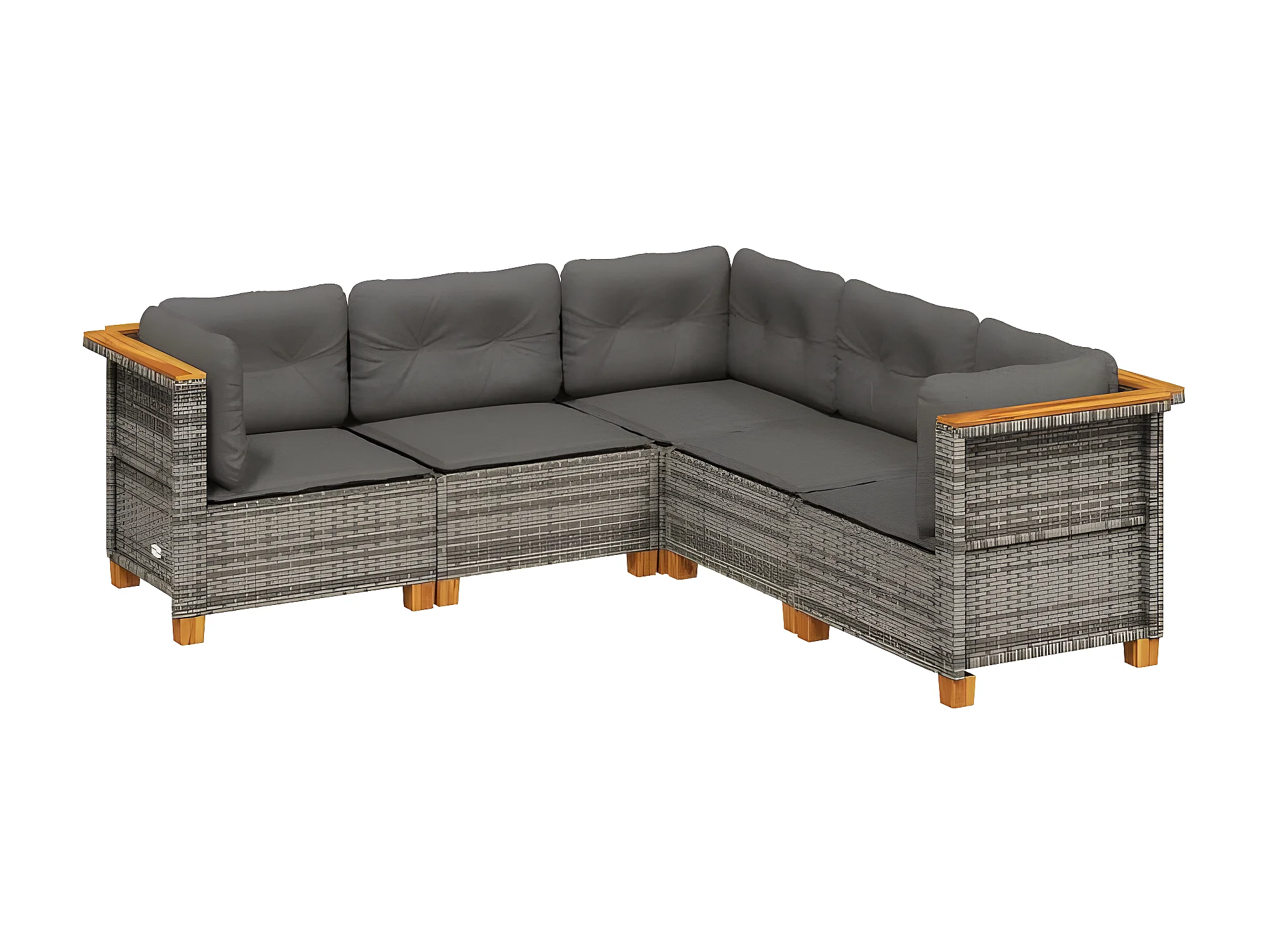 Salon de jardin 5 pcs avec coussins gris résine tressée
