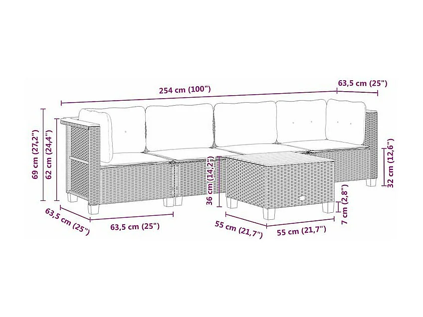 Salon de jardin 5 pcs avec coussins gris résine tressée
