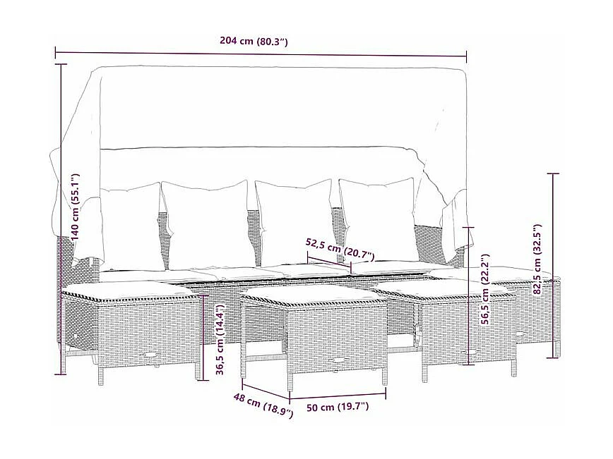 Salon de jardin 5 pcs avec coussins gris résine tressée