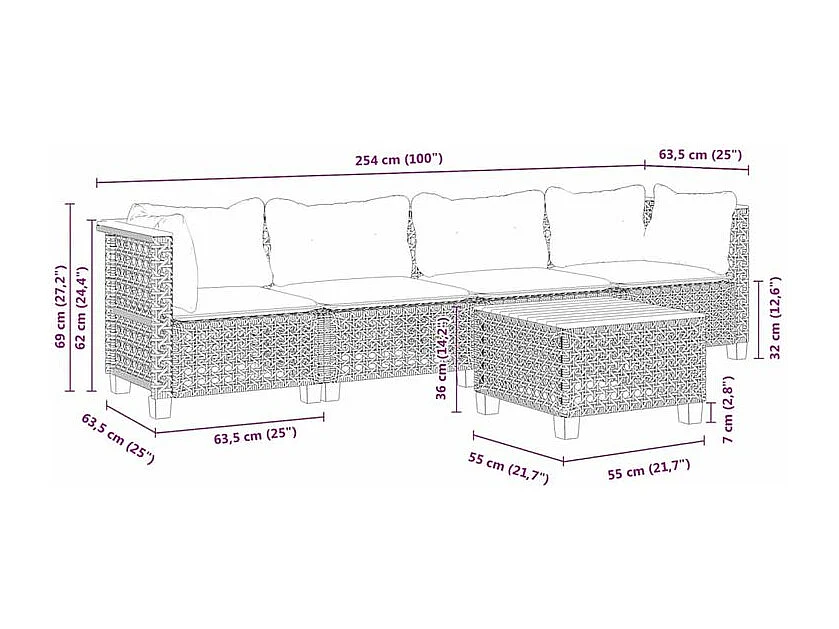 Salon de jardin 5 pcs avec coussins gris résine tressée