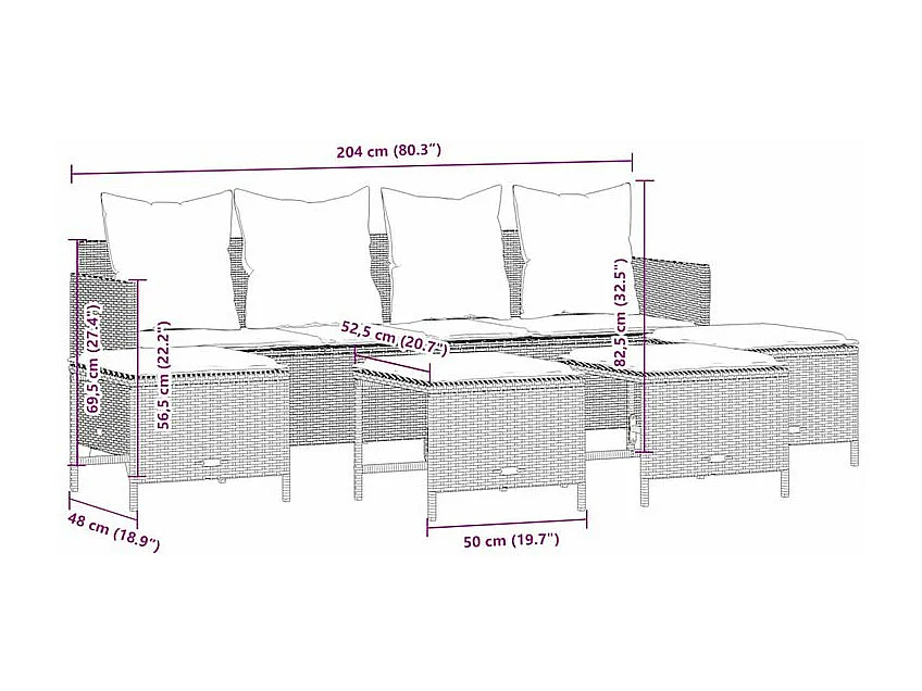 Salon de jardin 5 pcs avec coussins gris résine tressée
