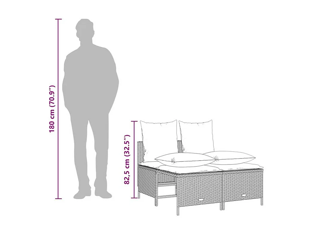 Salon de jardin 5 pcs avec coussins gris résine tressée