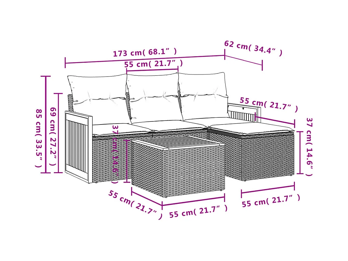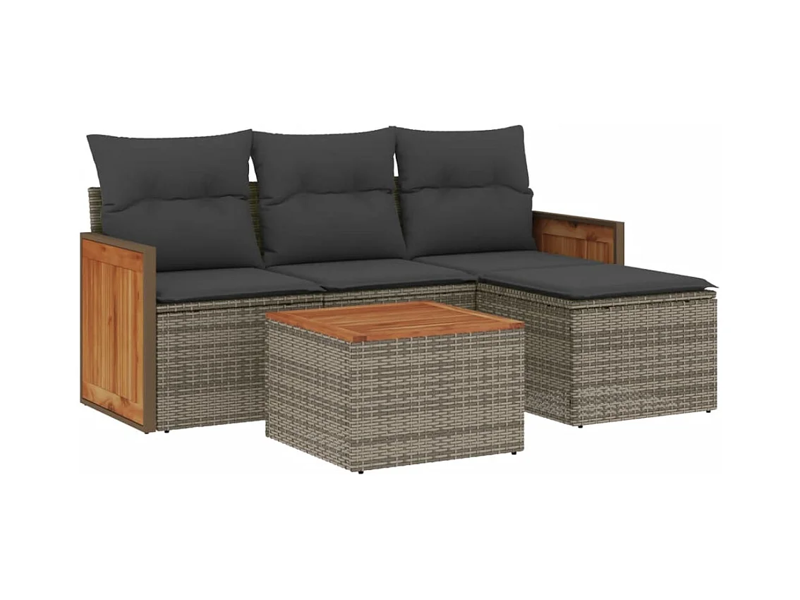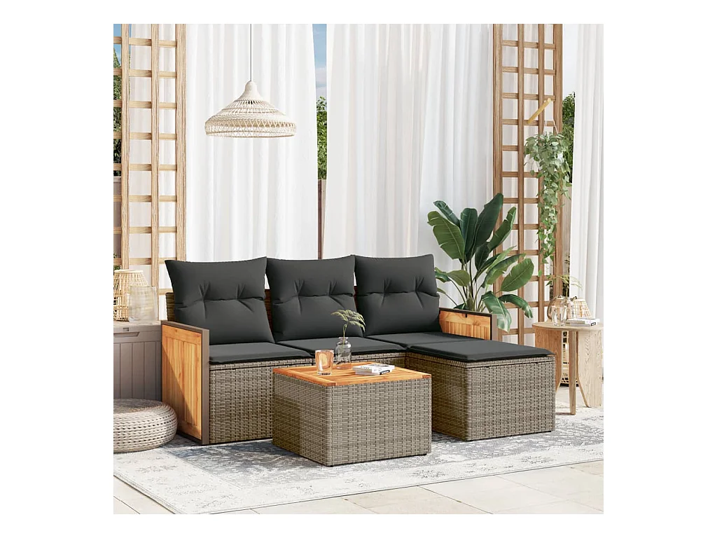 Salon de jardin 5 pcs avec coussins gris résine tressée FR33456