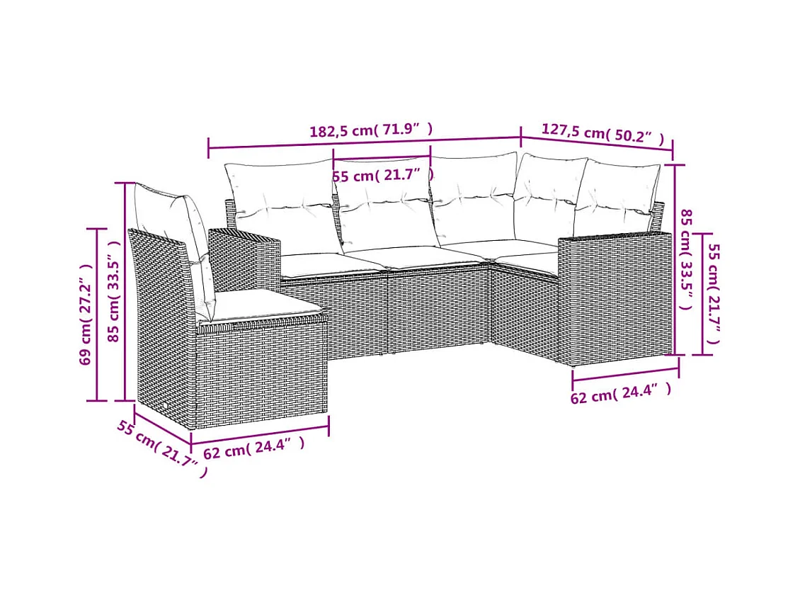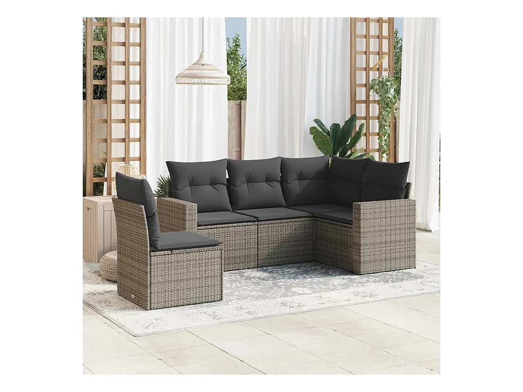Salon de jardin 5 pcs avec coussins gris résine tressée BE91746