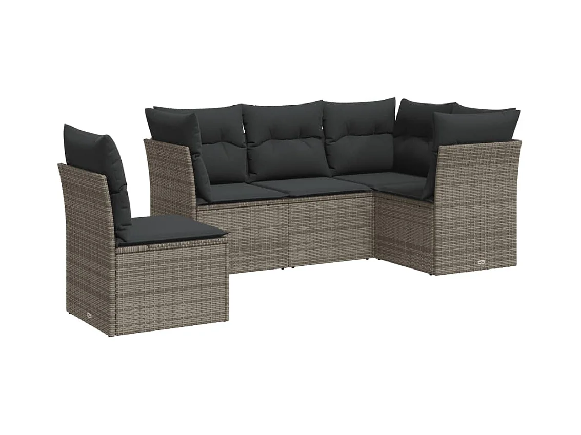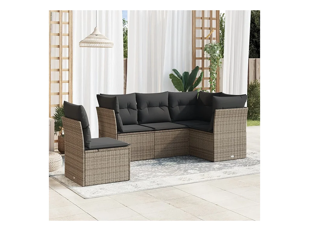 Salon de jardin 5 pcs avec coussins gris résine tressée BE62749