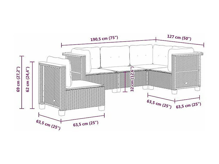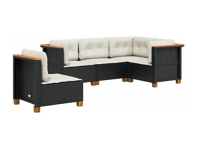 Salon de jardin 5 pcs avec coussins noir résine tressée