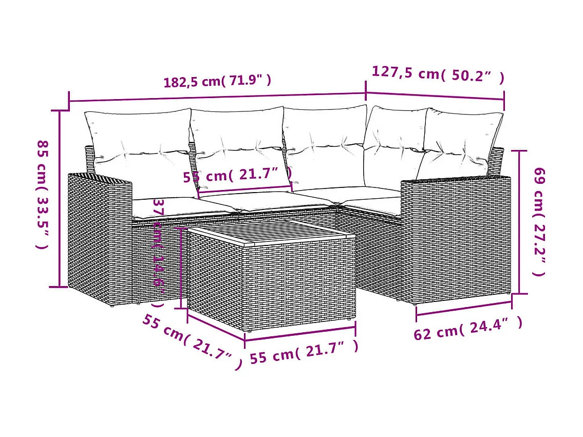 Salon de jardin 5 pcs avec coussins noir résine tressée