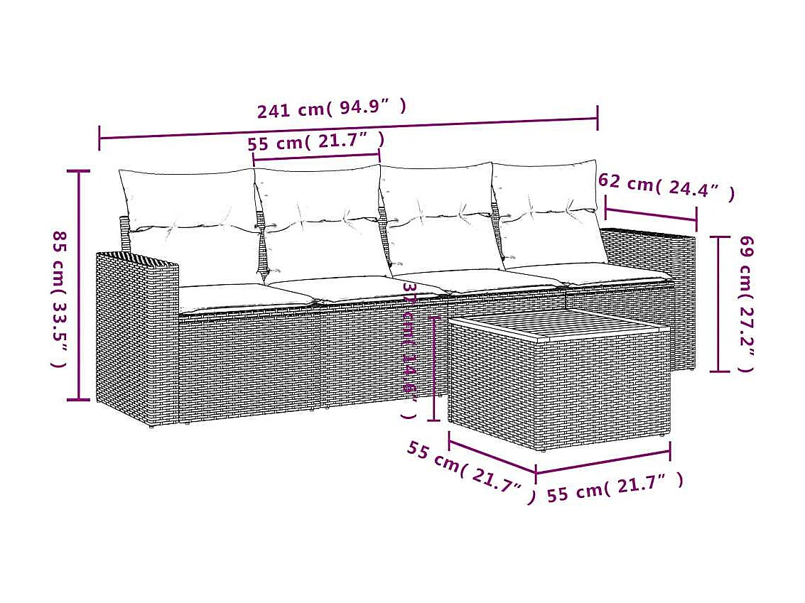 Salon de jardin 5 pcs avec coussins noir résine tressée