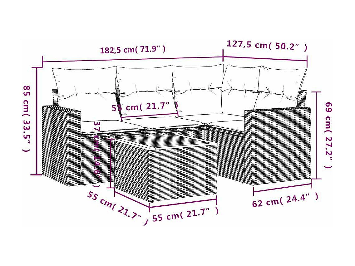 Salon de jardin 5 pcs avec coussins noir résine tressée
