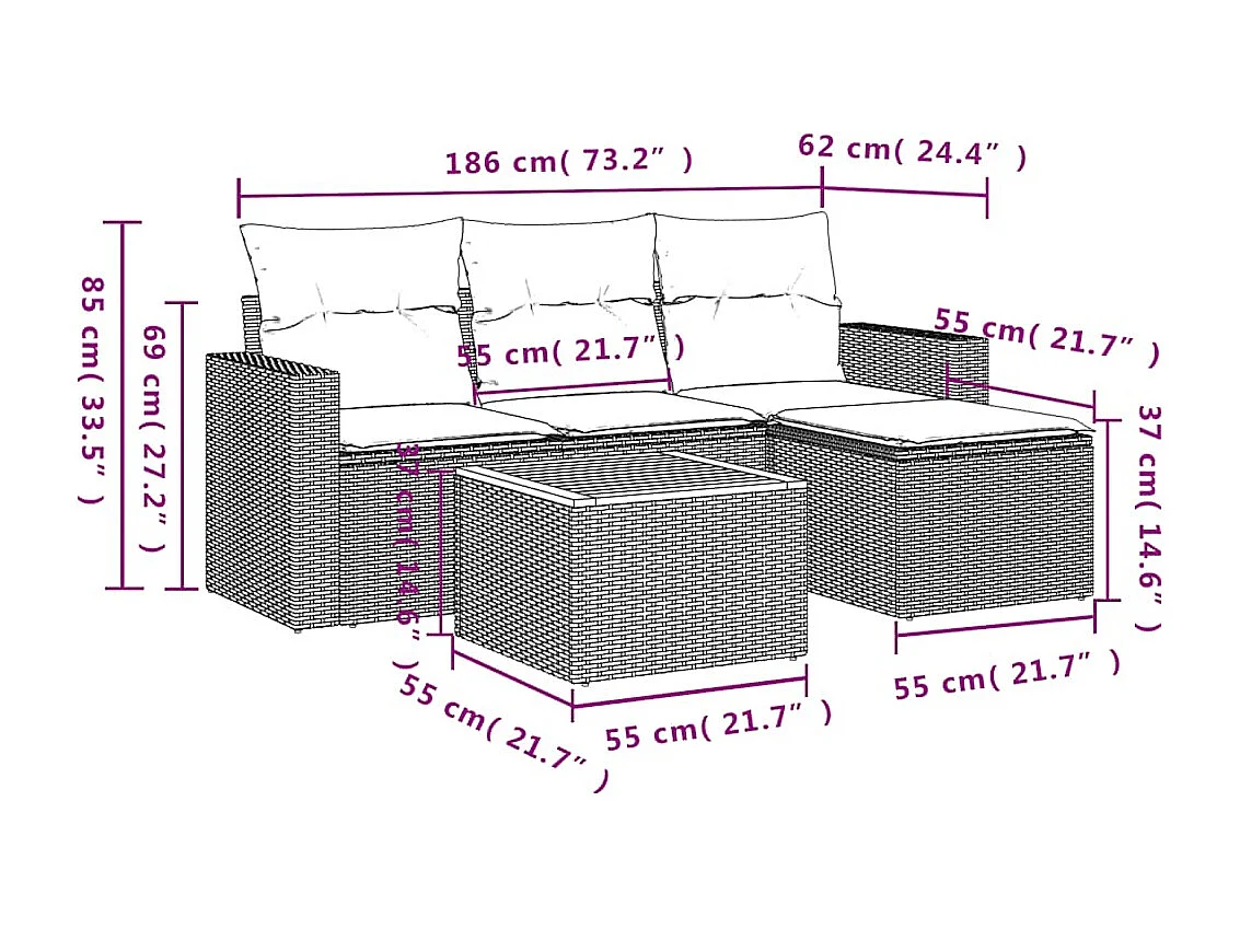 Salon de jardin 5 pcs avec coussins noir résine tressée