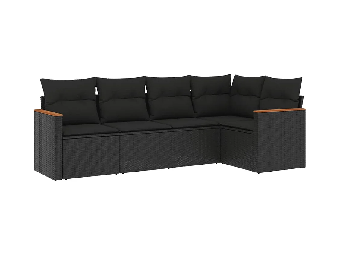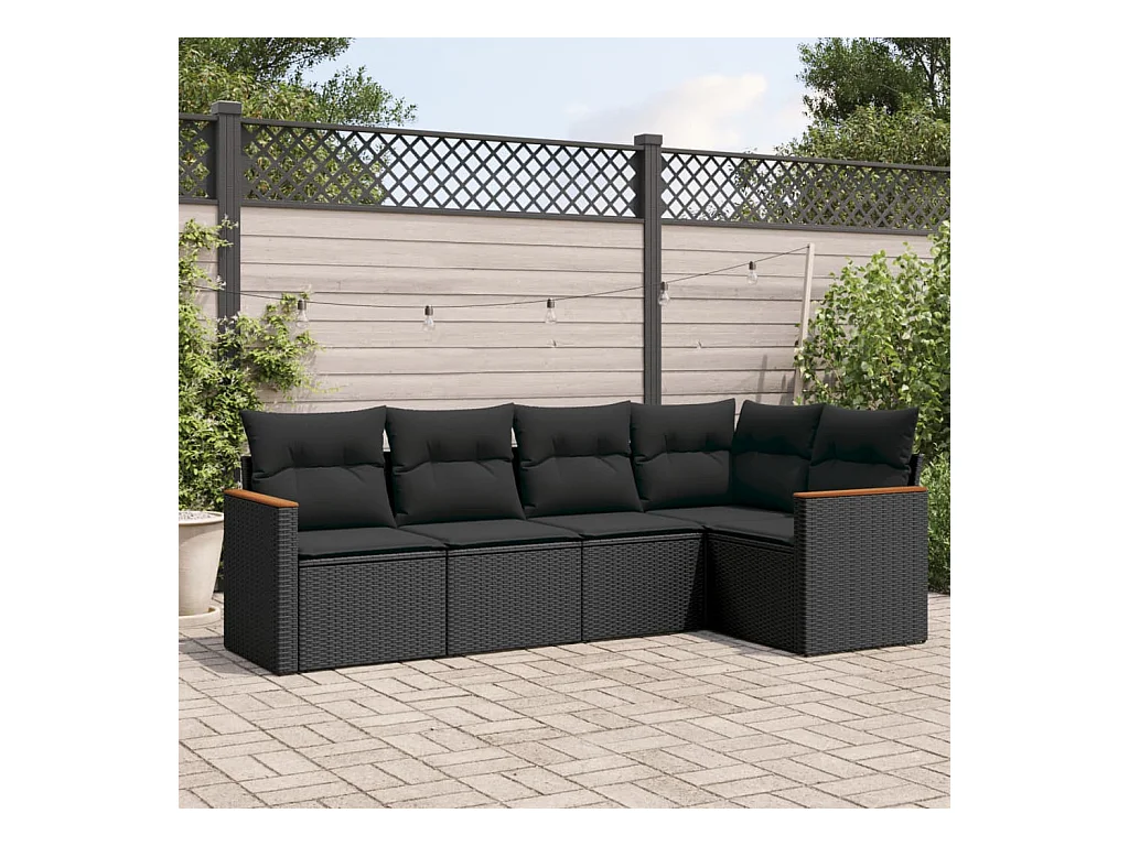 Salon de jardin 5 pcs avec coussins noir résine tressée