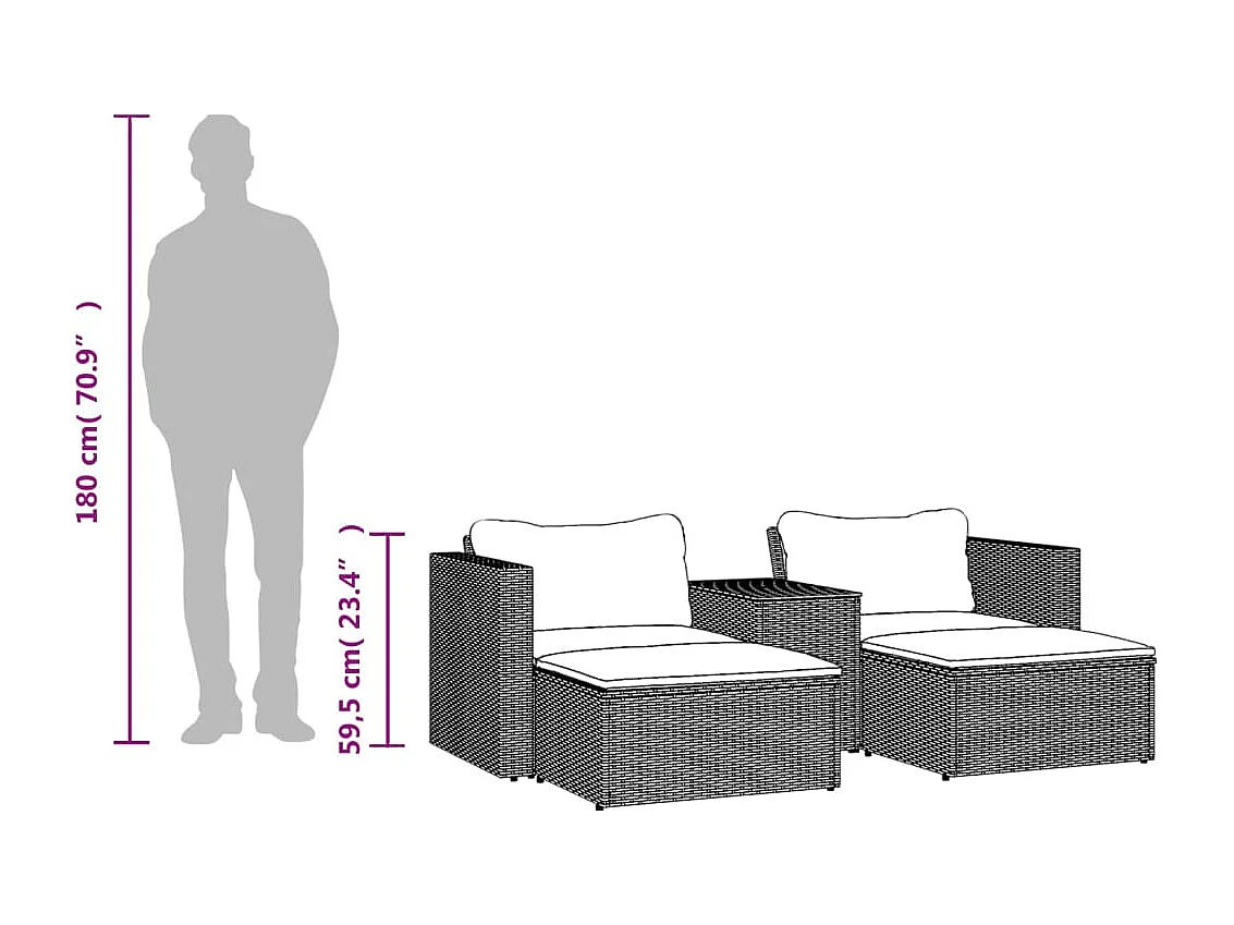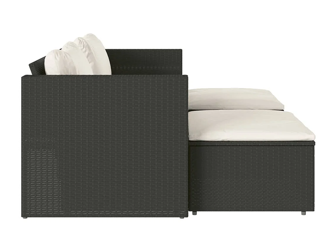 Salon de jardin 5 pcs avec coussins noir résine tressée acacia
