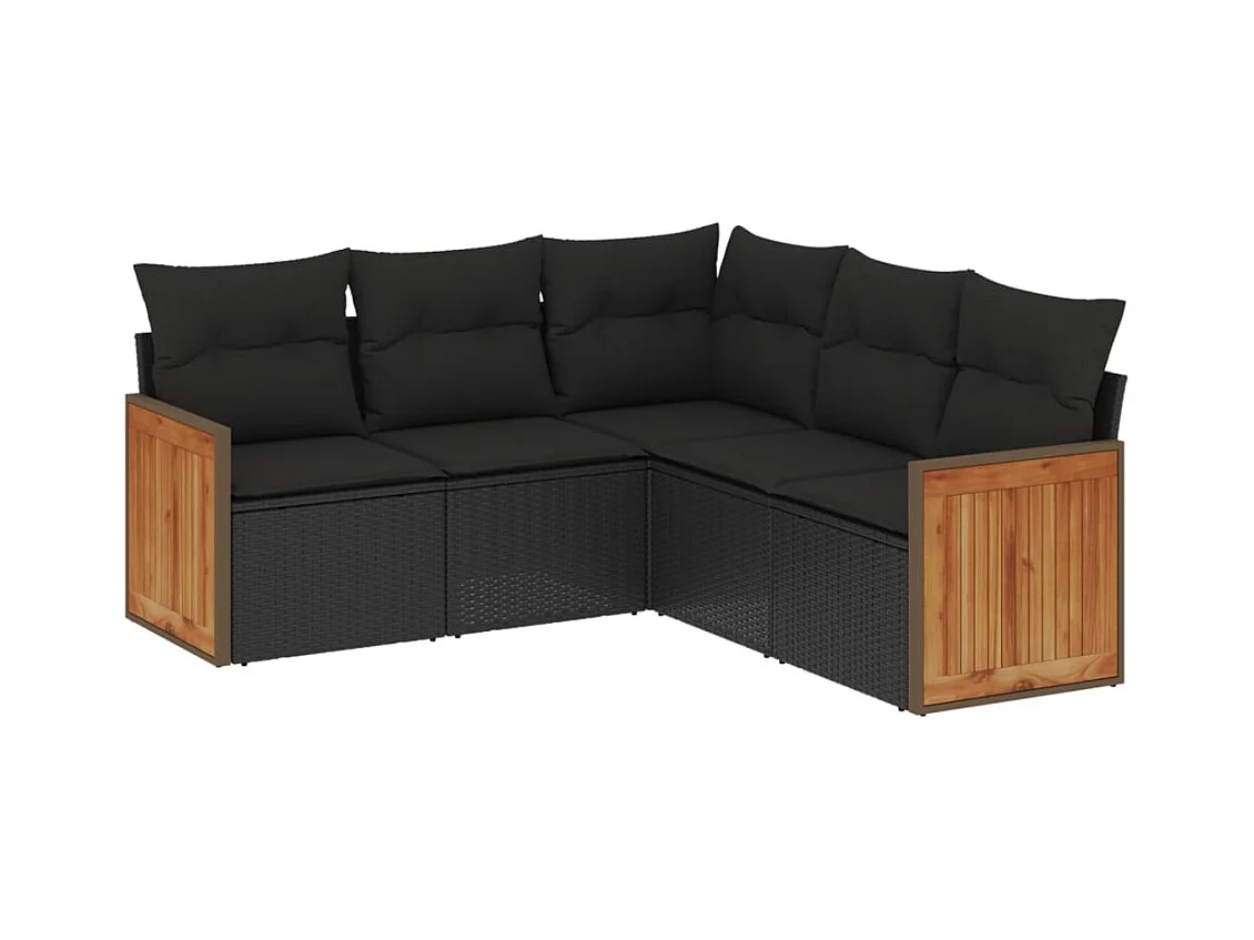 Salon de jardin 5 pcs avec coussins noir résine tressée FR32007