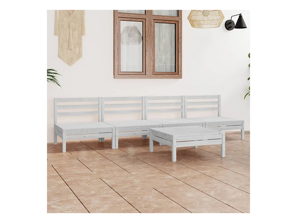 Salon de jardin 5 pcs Blanc Bois de pin massif 20
