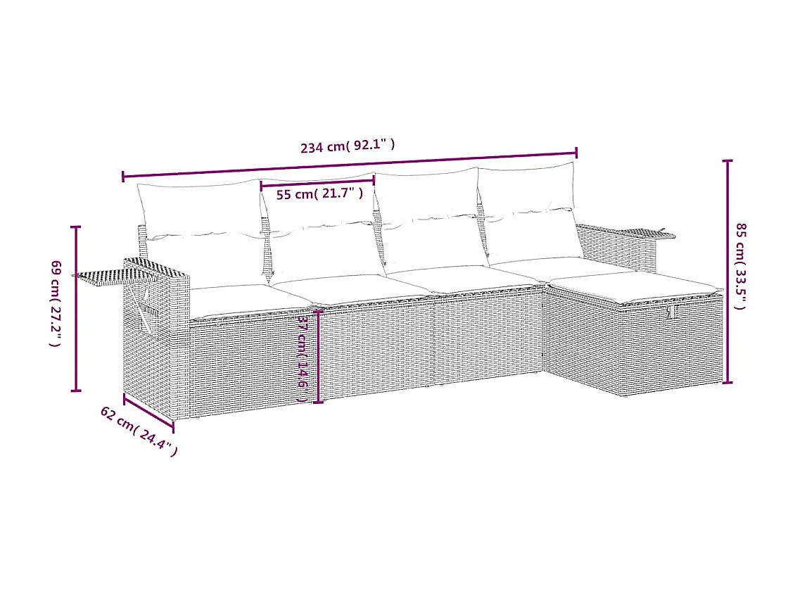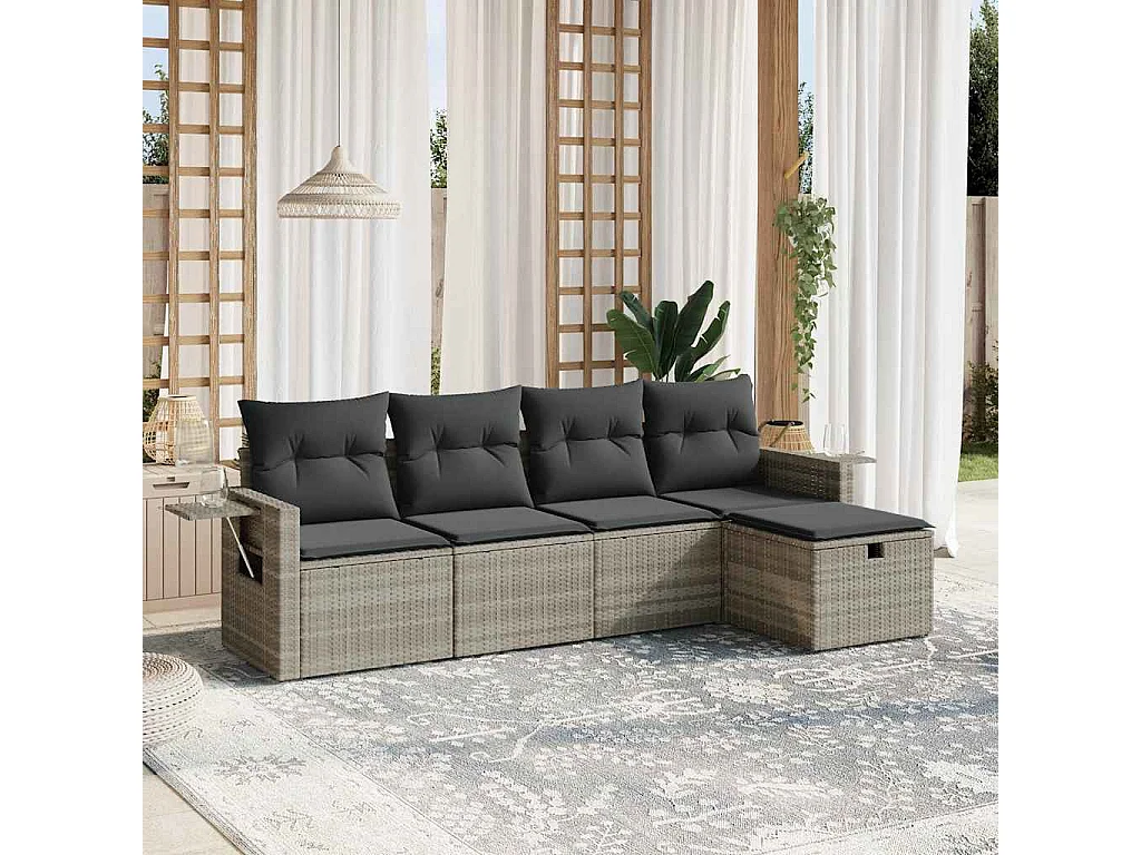 Salon de jardin 5 pièces avec coussins gris clair résine tressée