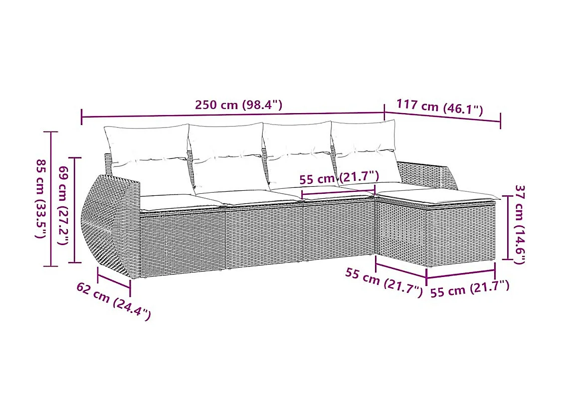 Salon de jardin 5 pièces avec coussins gris clair résine tressée
