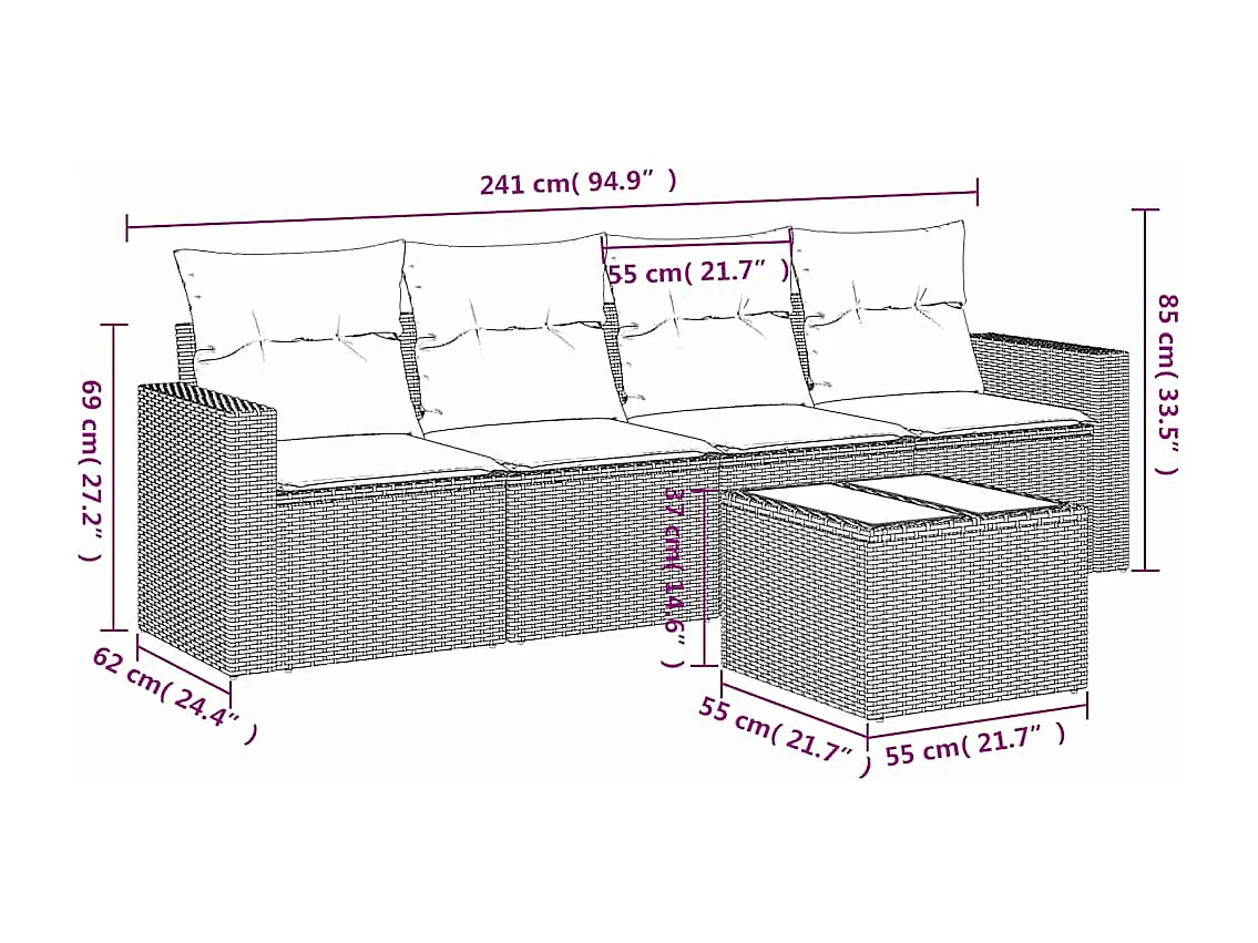 Salon de jardin 5 pièces avec coussins gris clair résine tressée