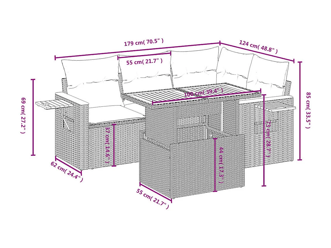 Salon de jardin 5 pièces avec coussins noir résine tressée