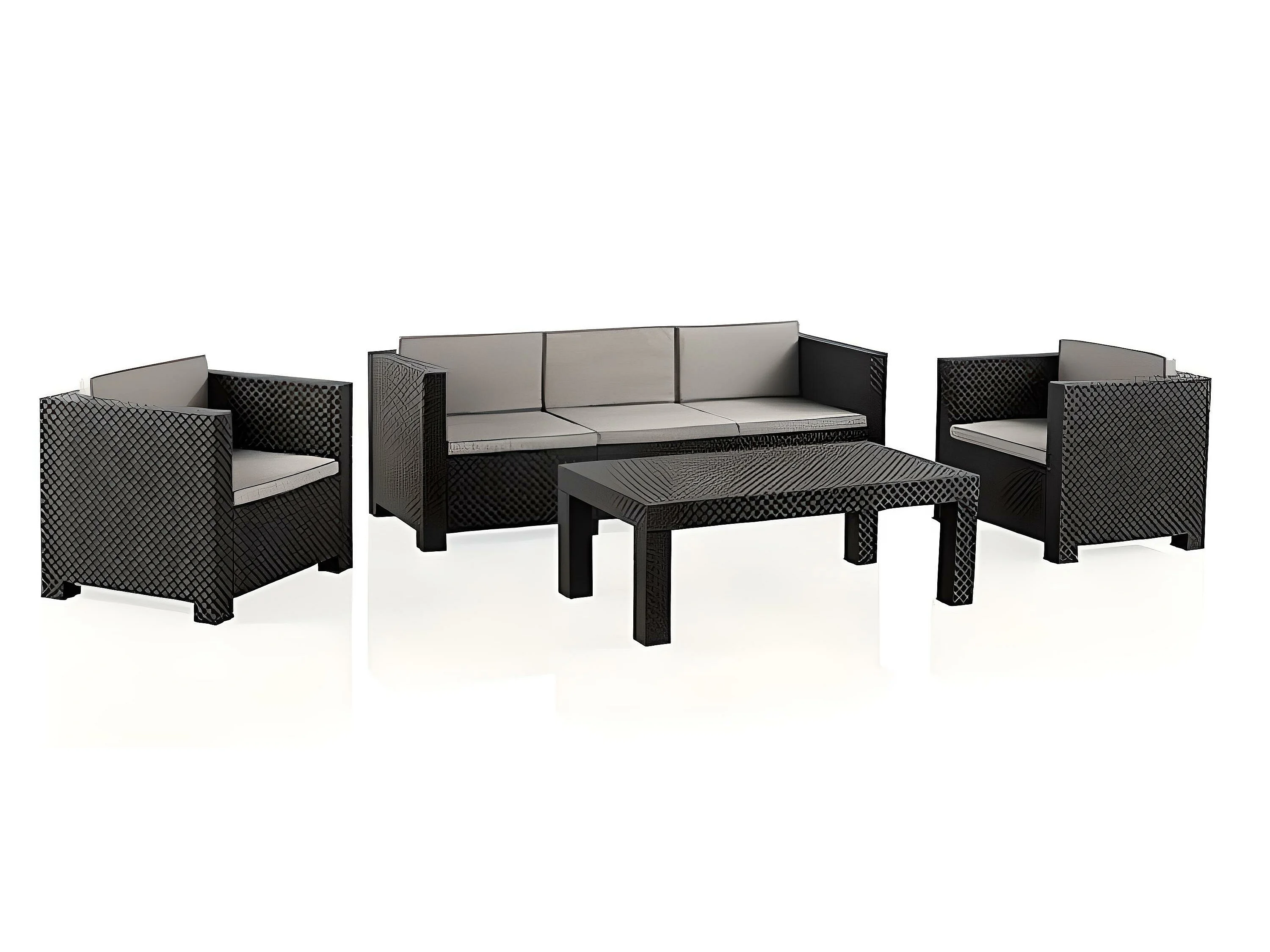 Salon de Jardin 5 Places en résine anthracite (1 table basse + 1 canapé 3 places + 2 fauteuils)