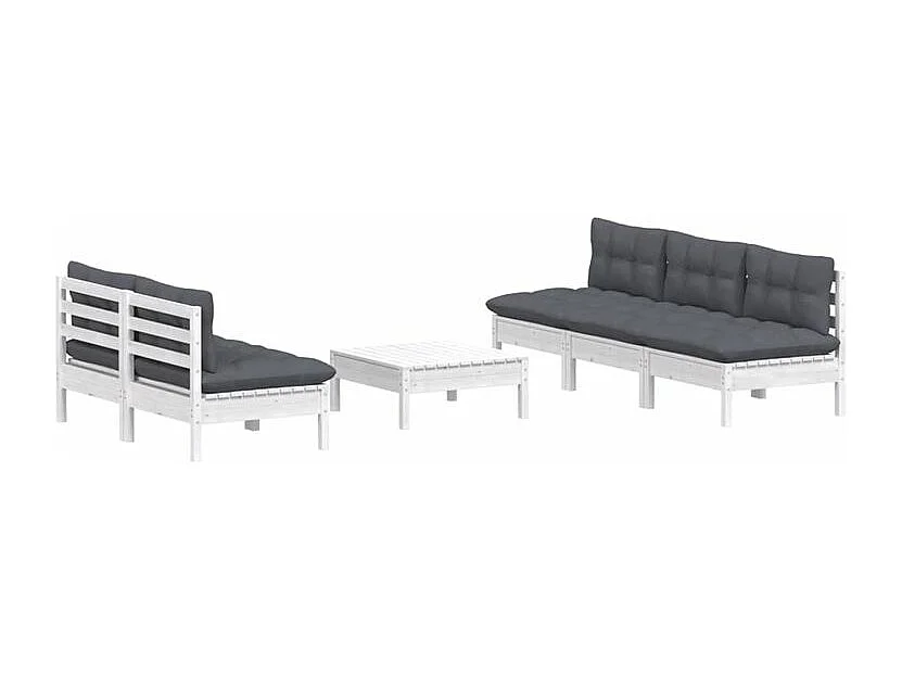 Salon de jardin 6 pcs avec coussins anthracite bois de pin