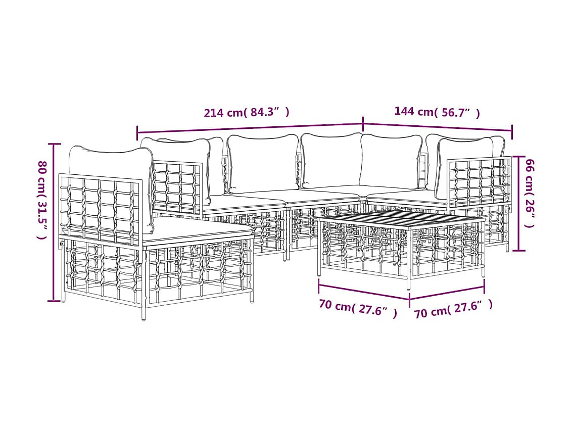 Salon de jardin 6 pcs avec coussins anthracite résine tressée