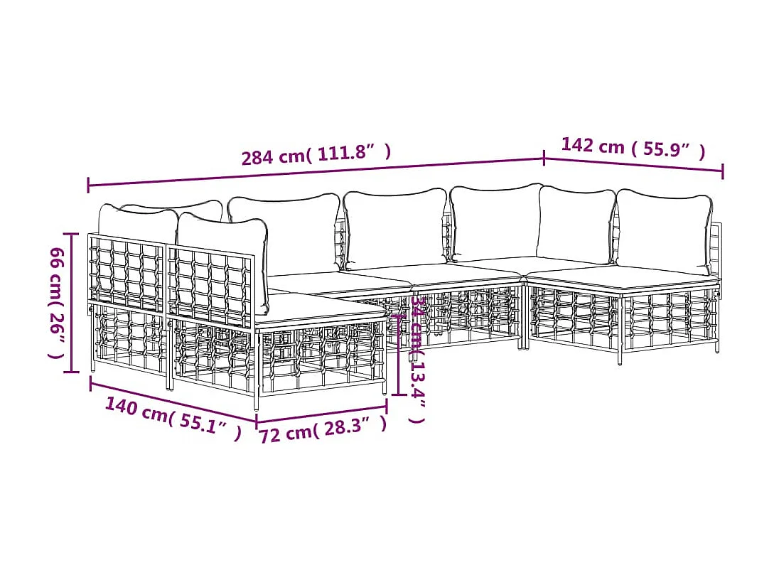 Salon de jardin 6 pcs avec coussins anthracite résine tressée