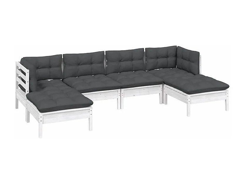 Salon de jardin 6 pcs avec coussins Blanc Bois de pin