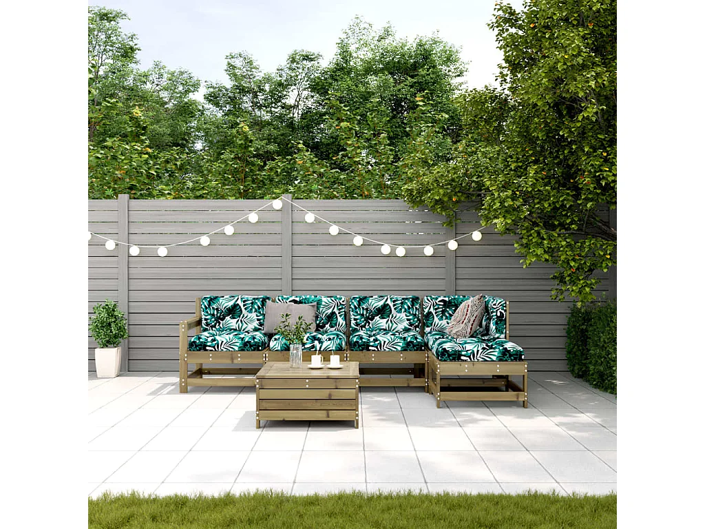 Salon de jardin 6 pcs avec coussins bois de pin imprégné