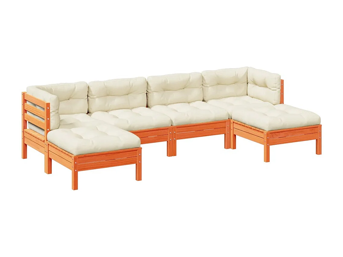 Salon de jardin 6 pcs avec coussins cire marron bois pin massif