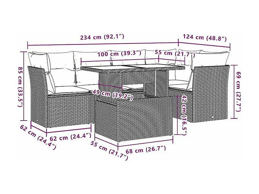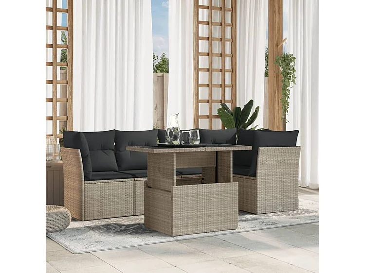 Salon de jardin 6 pcs avec coussins gris clair résine tressée