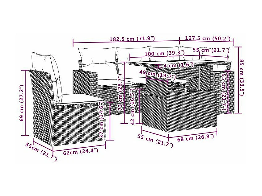 Salon de jardin 6 pcs avec coussins gris clair résine tressée
