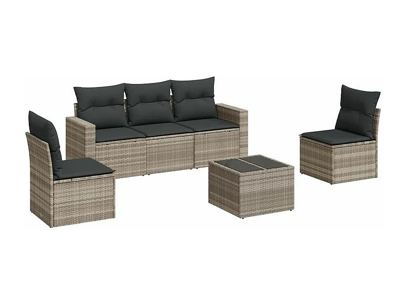 Salon de jardin 6 pcs avec coussins gris clair résine tressée