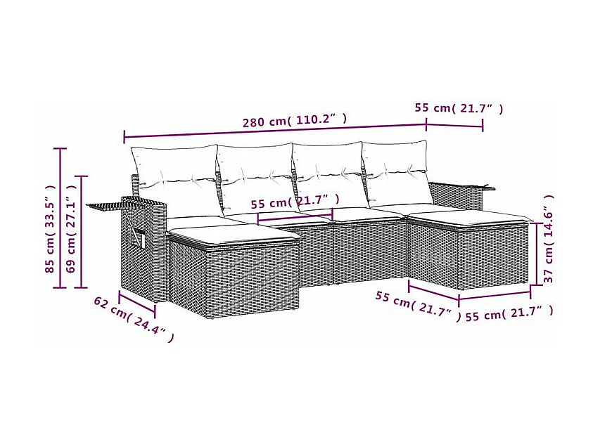 Salon de jardin 6 pcs avec coussins gris clair résine tressée