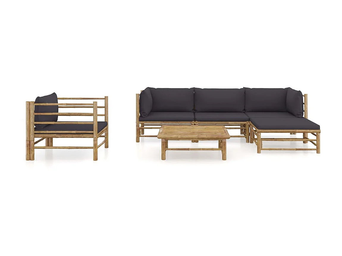 Salon de jardin 6 pcs avec coussins gris foncé Bambou 4