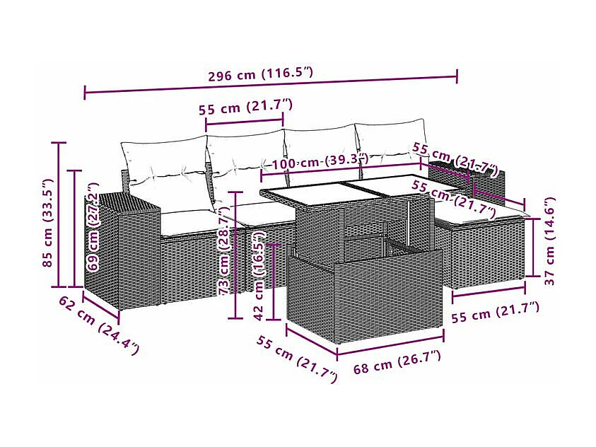 Salon de jardin 6 pcs avec coussins gris résine tressée
