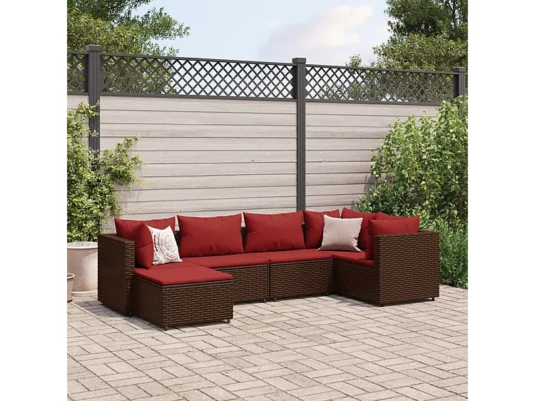 Salon de jardin 6 pcs avec coussins Marron Résine tressée