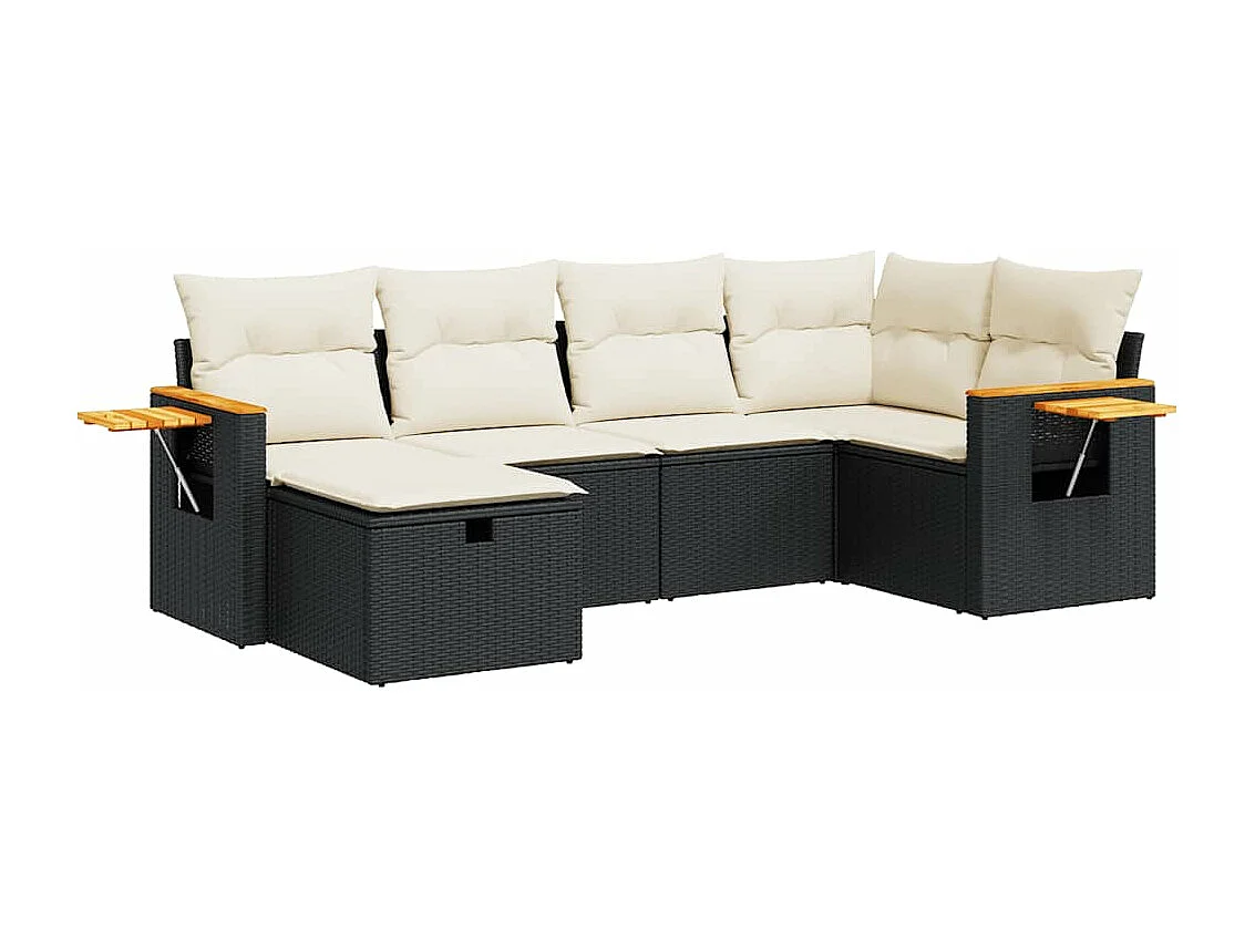 Salon de jardin 6 pcs avec coussins noir résine tressée