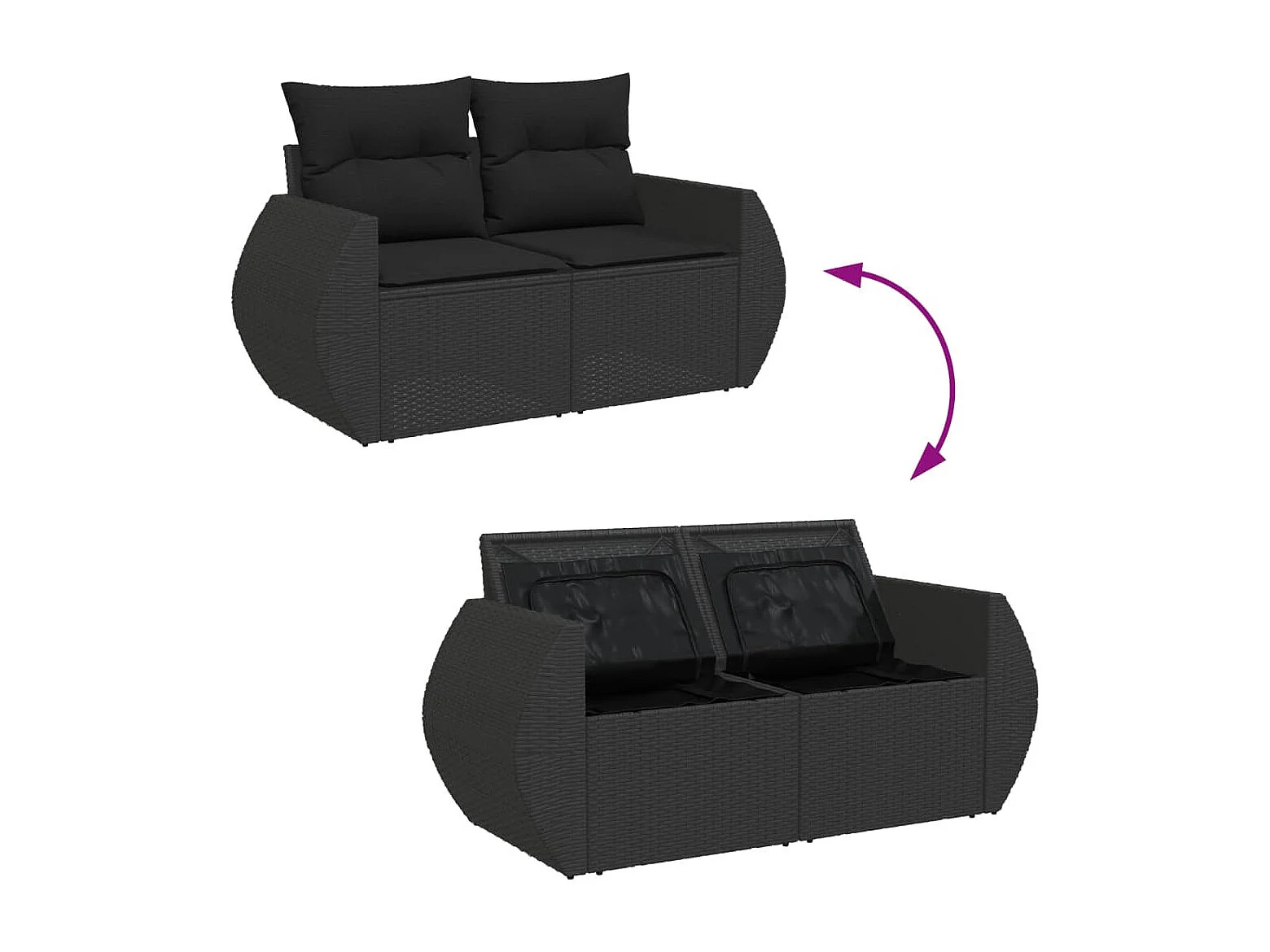 Salon de jardin 6 pcs avec coussins noir résine tressée