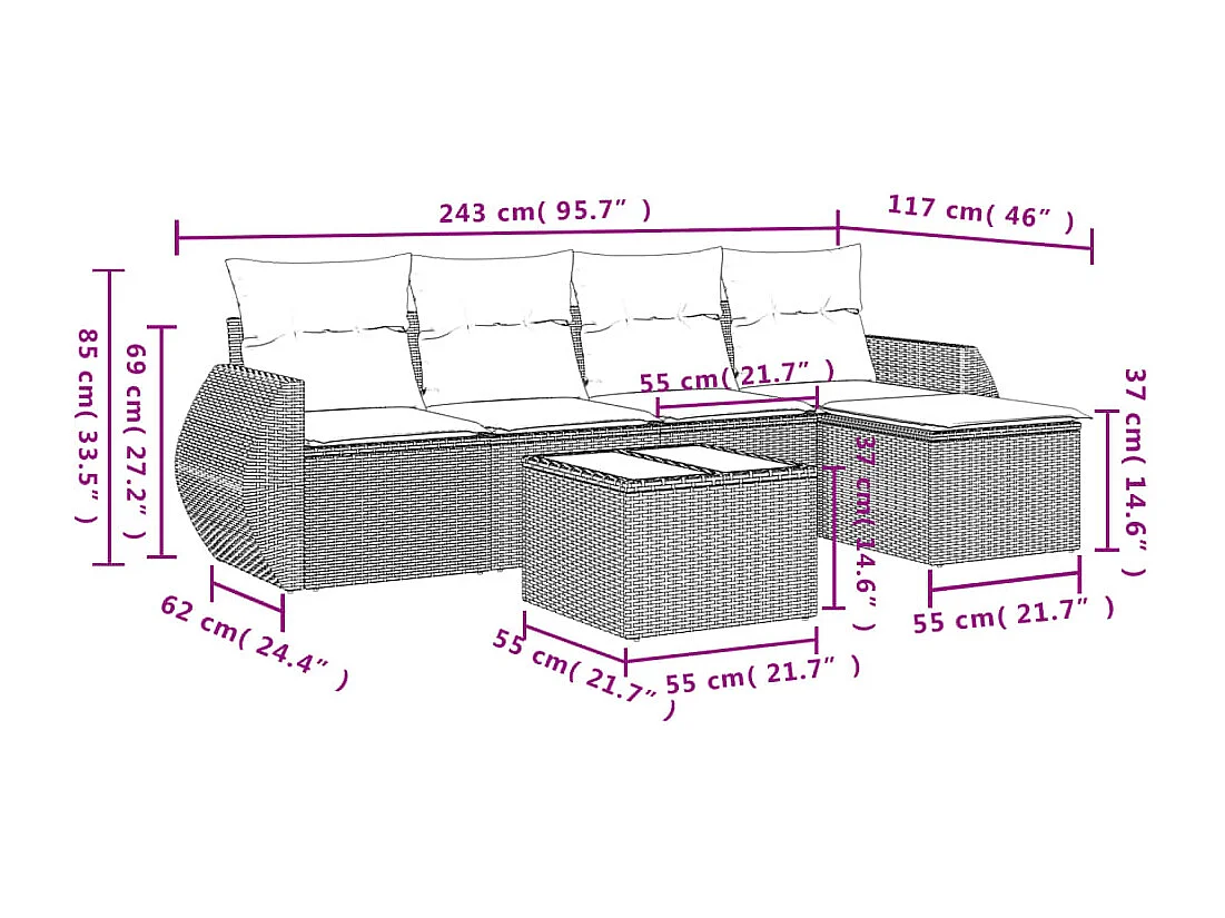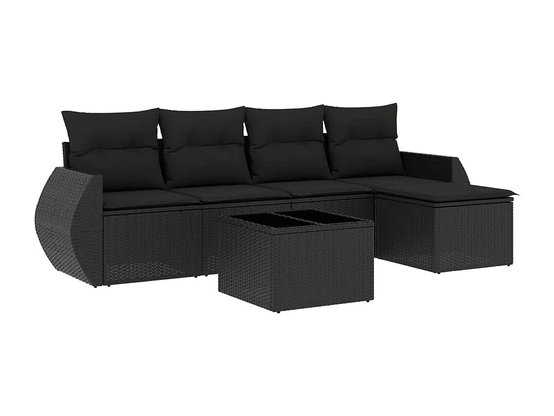 Salon de jardin 6 pcs avec coussins noir résine tressée