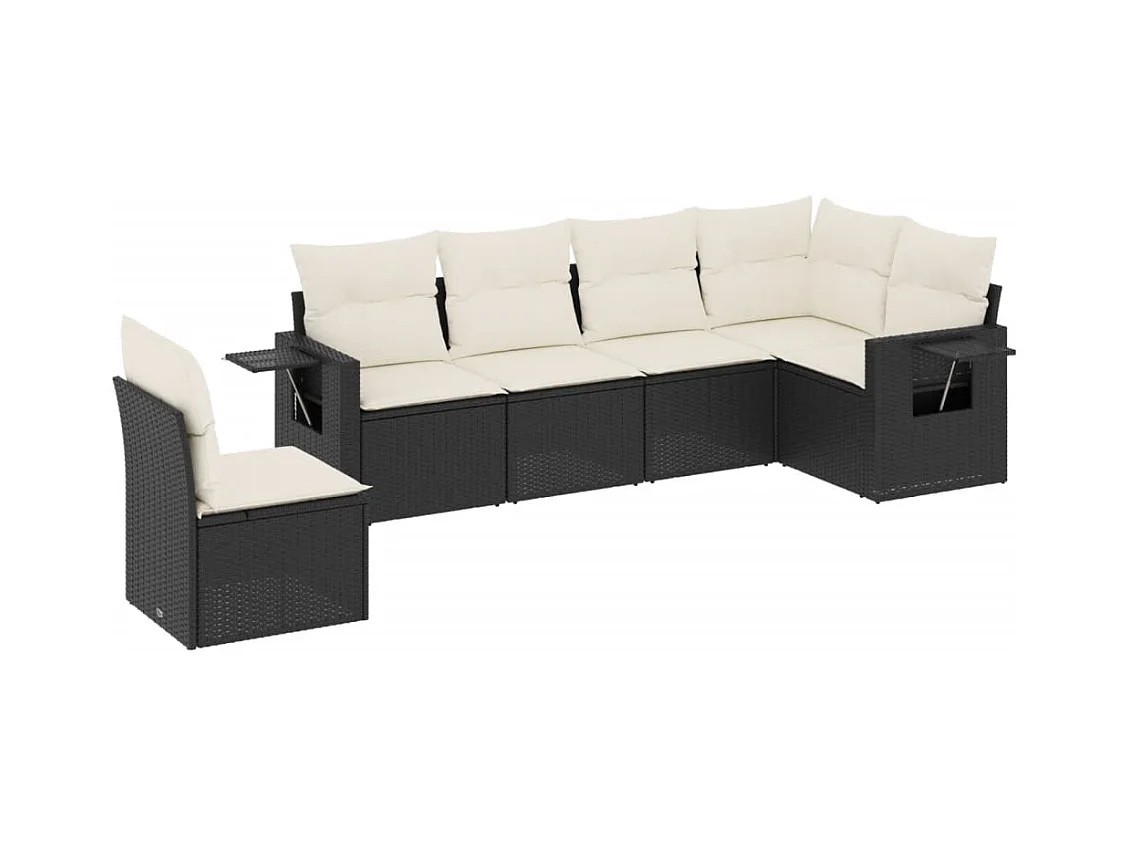 Salon de jardin 6 pcs avec coussins noir résine tressée FR33788