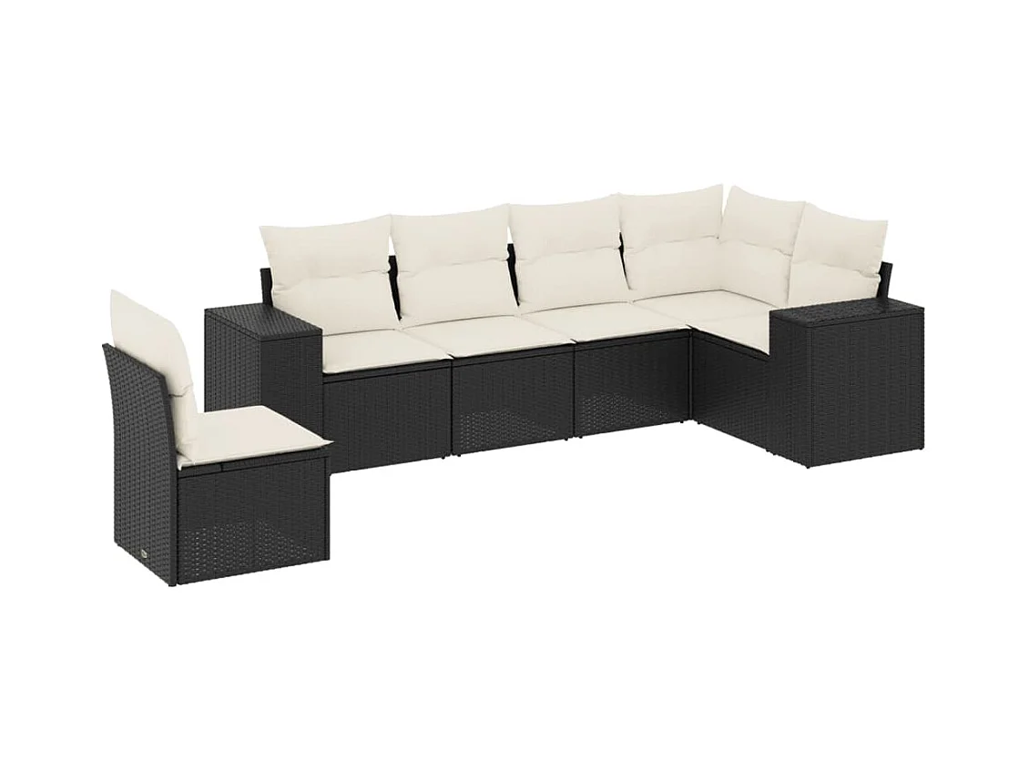 Salon de jardin 6 pcs avec coussins noir résine tressée FR72732