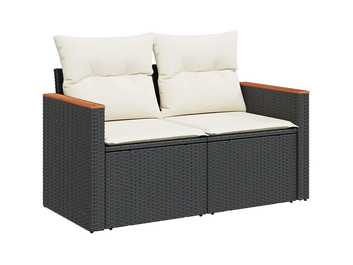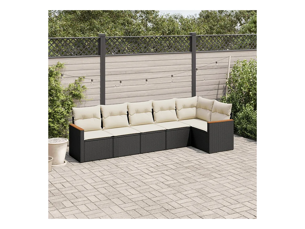 Salon de jardin 6 pcs avec coussins noir résine tressée FR73357