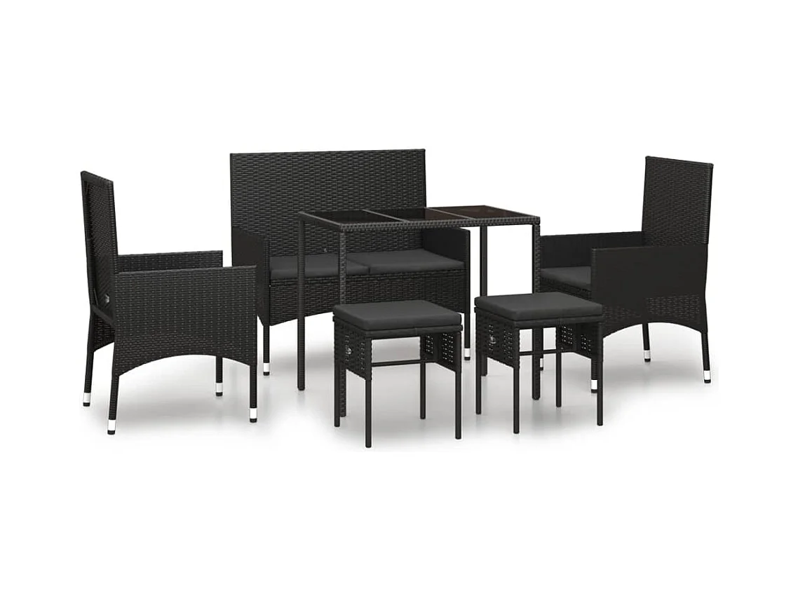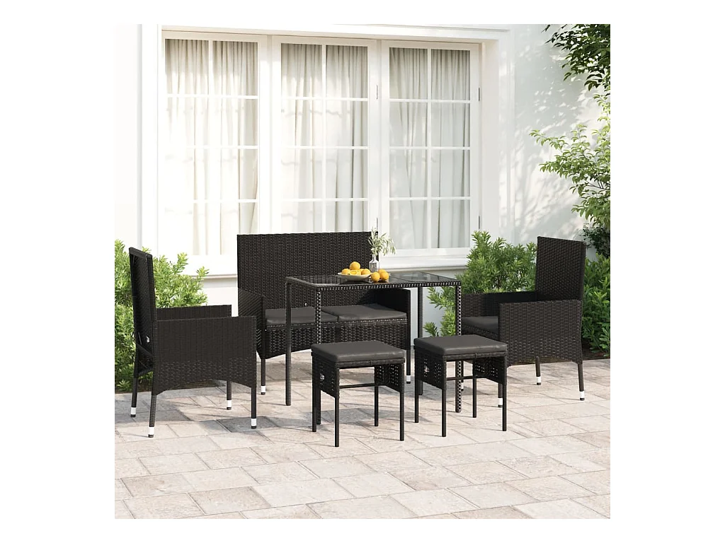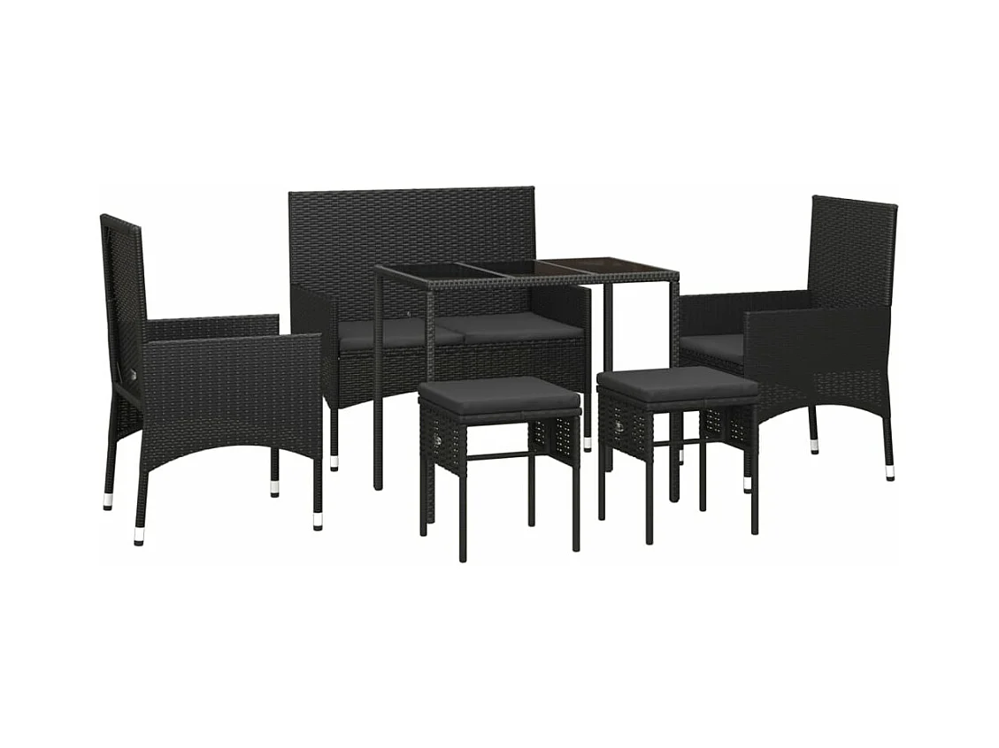 Salon de jardin 6 pcs avec coussins Noir Résine tressée BE16578