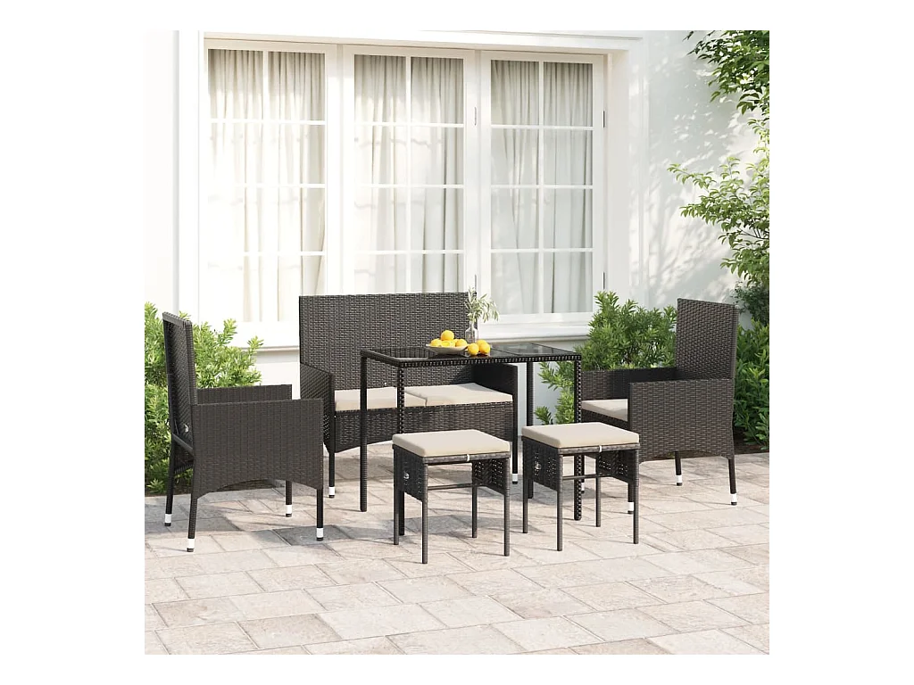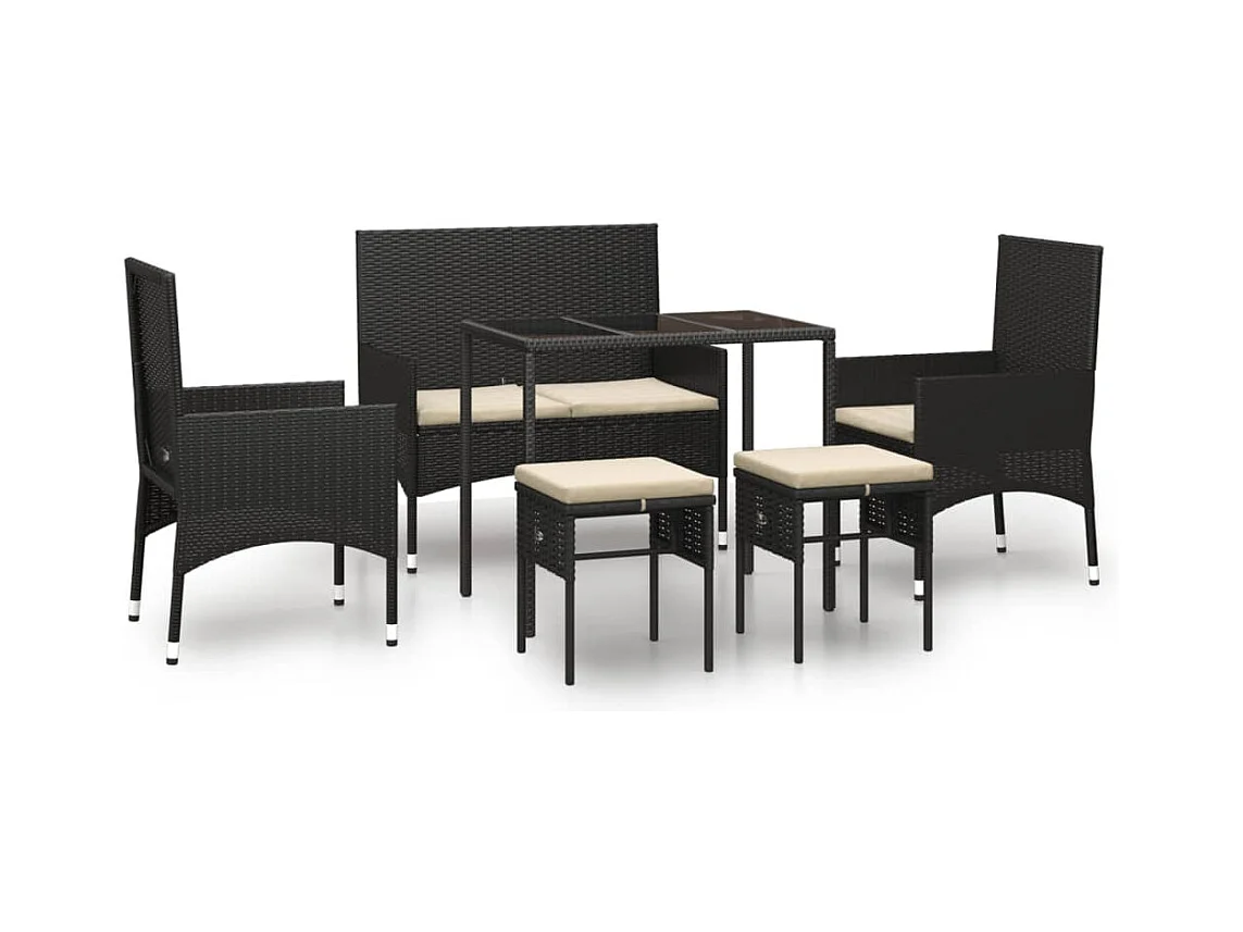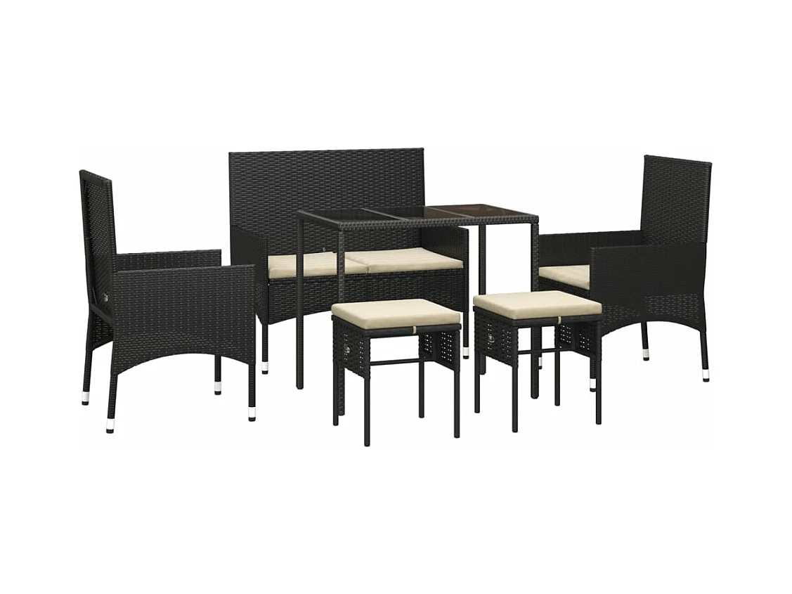 Salon de jardin 6 pcs avec coussins Noir Résine tressée BE31891