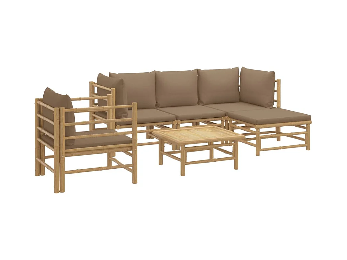 Salon de jardin 6 pcs avec coussins taupe bambou